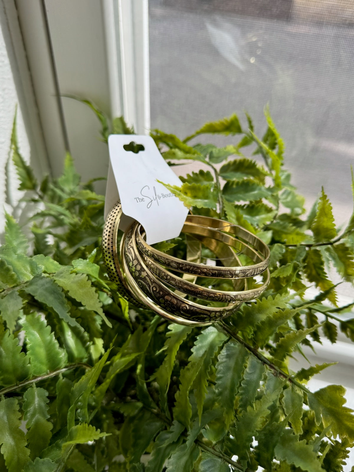 Add some timeless elegance to your outfit with our Victorian Bangle Set. This set of five gold-plated bangles offers a mix of smooth and embossed designs, giving you the option to stack them or wear each one individually. With a 2 5/8" diameter and 1/8 - 3/8" width, these bangles add a touch of sophistication to any look. The antiqued plating highlights the intricate details, making this set a must-have for any fashion-forward individual.